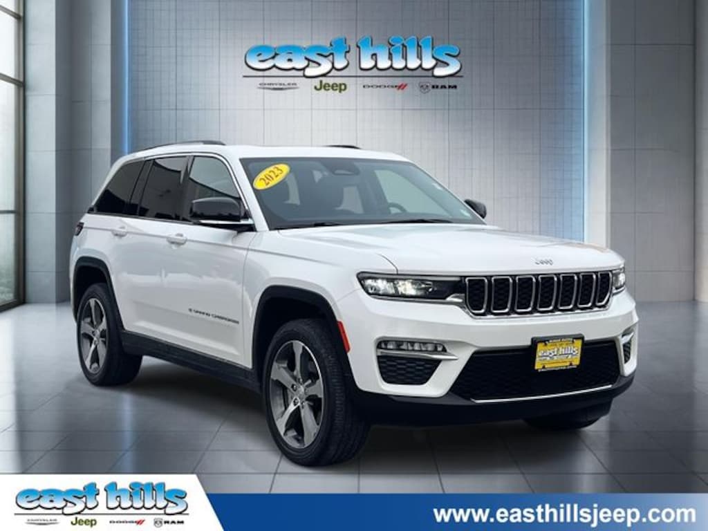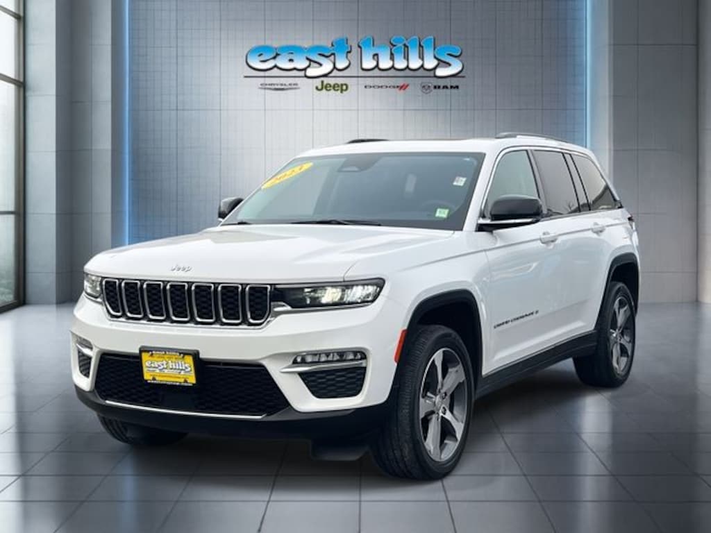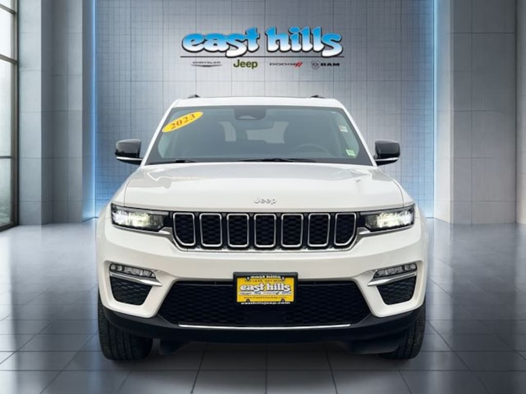 CARFAX One-Owner. Clean CARFAX. Certified. Bright White Clearcoat 2023 Jeep Grand Cherokee Limited 3.6L V6 24V VVT 8-Speed Automatic 4WD 4-Wheel Disc Brakes, ABS brakes, Active Noise Control System, Air Conditioning, Alloy wheels, AM/FM radio: SiriusXM with 360L, Anti-whiplash front head restraints, Auto High-beam Headlights, Automatic temperature control, Brake assist, Capri Leatherette Seats, Compass, Dual front impact airbags, Dual front side impact airbags, Dual-Pane Panoramic Sunroof, Electronic Stability Control, Emergency communication system, Four wheel independent suspension, Front anti-roll bar, Front dual zone A/C, Front fog lights, Fully automatic headlights, Garage door transmitter, Heated front seats, Heated rear seats, Heated steering wheel, Knee airbag, Low tire pressure warning, Memory seat, Navigation System, Normal Duty Suspension, Occupant sensing airbag, Outside temperature display, Overhead airbag, ParkView Rear Back-Up Camera, Power driver seat, Power Liftgate, Power passenger seat, Power steering, Power windows, Quick Order Package 23E, Radio: Uconnect 5 Nav w/10.1" Display, Rear anti-roll bar, Remote keyless entry, Security system, Speed-Sensitive Wipers, Split folding rear seat, Steering wheel mounted audio controls, Traction control, Wheels: 20" x 8.5" Machined/Painted Aluminum.