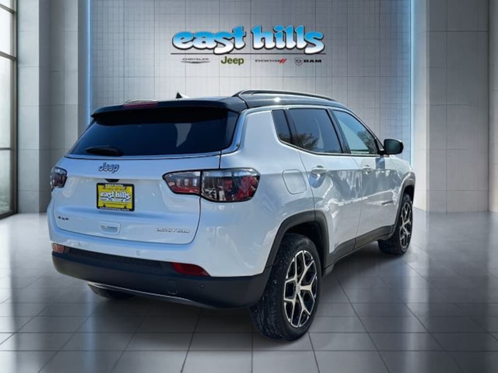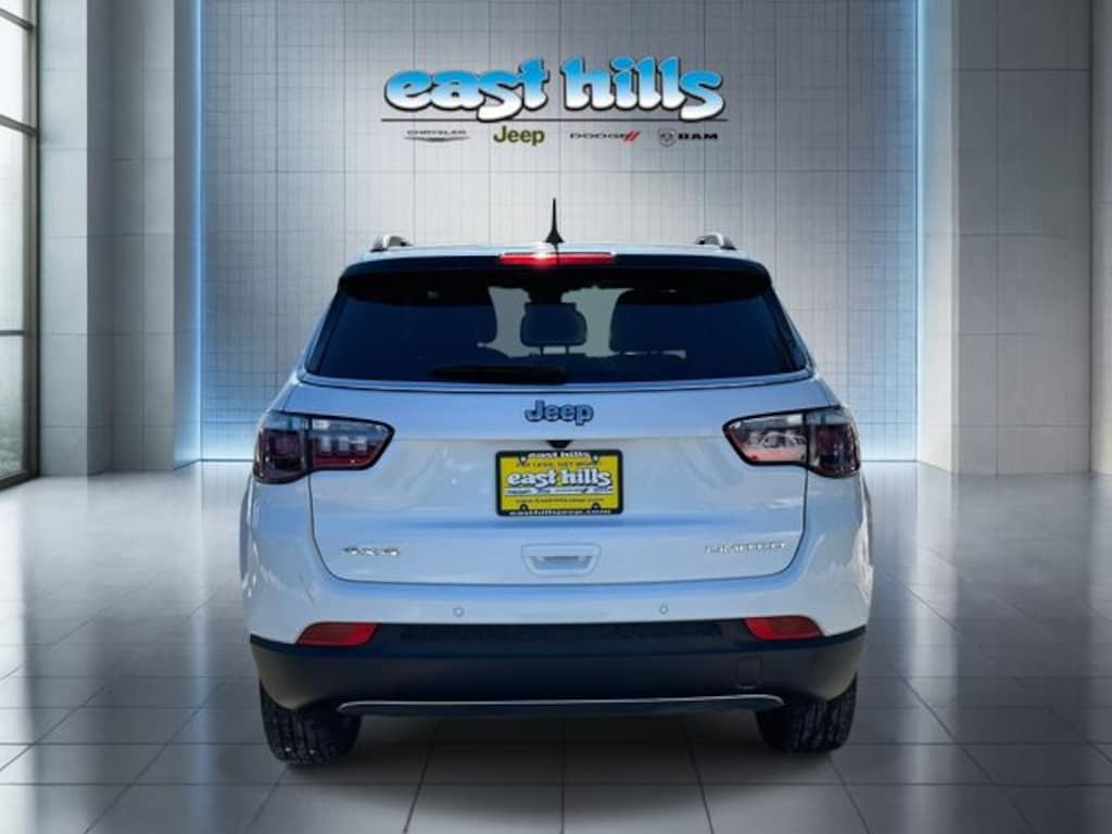 CARFAX One-Owner. Clean CARFAX. Certified. Bright White Clearcoat 2024 Jeep Compass Limited 2.0L I4 DOHC 8-Speed Automatic 4WD 10.1" Touchscreen Display, 4-Wheel Disc Brakes, 4G LTE Wi-Fi Hot Spot, ABS brakes, Air Conditioning, Alloy wheels, AM/FM radio: SiriusXM, Auto High-beam Headlights, Auto-dimming Rear-View mirror, Automatic temperature control, Brake assist, Compass, Dual front impact airbags, Dual front side impact airbags, Electronic Stability Control, Emergency communication system: Jeep Connect, Four wheel independent suspension, Front anti-roll bar, Front dual zone A/C, Front fog lights, Fully automatic headlights, Heated front seats, Heated steering wheel, Knee airbag, Leather Shift Knob, Leather steering wheel, Leatherette Seats, Low tire pressure warning, Occupant sensing airbag, Outside temperature display, Overhead airbag, ParkView Rear Back-Up Camera, Power driver seat, Power steering, Power windows, Quick Order Package 29G Limited, Radio: Uconnect 5 w/10.1" Display, Rain sensing wipers, Rear anti-roll bar, Remote keyless entry, Security system, Split folding rear seat, Steering wheel mounted audio controls, Traction control, Wheels: 18" x 7" Painted Diamond Cut Aluminum.