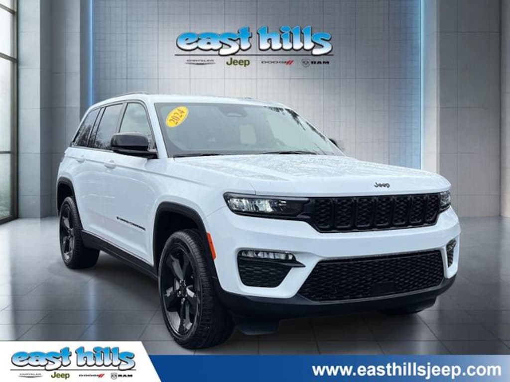 CARFAX One-Owner. Clean CARFAX. Certified. Bright White Clearcoat 2024 Jeep Grand Cherokee Limited 3.6L V6 24V VVT 8-Speed Automatic 4WD 4-Wheel Disc Brakes, 6 Speakers, ABS brakes, Active Noise Control System, Air Conditioning, Alloy wheels, AM/FM radio: SiriusXM with 360L, Anti-whiplash front head restraints, Auto High-beam Headlights, Automatic temperature control, Black Appearance Package, Brake assist, Capri Leatherette Seats, Compass, Dual front impact airbags, Dual front side impact airbags, Electronic Stability Control, Emergency communication system, Four wheel independent suspension, Front anti-roll bar, Front dual zone A/C, Front fog lights, Fully automatic headlights, Gloss Black Exterior Accents, Heated front seats, Heated rear seats, Heated steering wheel, Knee airbag, Low tire pressure warning, Memory seat, Navigation System, Normal Duty Suspension, Occupant sensing airbag, Outside temperature display, Overhead airbag, ParkView Rear Back-Up Camera, Power driver seat, Power Liftgate, Power passenger seat, Power steering, Power windows, Quick Order Package 22E, Radio: Uconnect 5 Nav w/10.1" Display, Rear anti-roll bar, Remote keyless entry, Security system, Speed-Sensitive Wipers, Split folding rear seat, Steering wheel mounted audio controls, Traction control, Wheels: 20" x 8.5" Gloss Black Painted Aluminum.