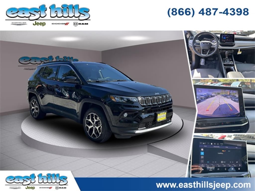 CARFAX One-Owner. Clean CARFAX. Certified. Diamond Black Crystal Pearlcoat 2025 Jeep Compass Limited 2.0L I4 DOHC 8-Speed Automatic 4WD 10.1" Touchscreen Display, 4-Wheel Disc Brakes, ABS brakes, Air Conditioning, Alloy wheels, AM/FM radio: SiriusXM, Auto High-beam Headlights, Auto-dimming Rear-View mirror, Automatic temperature control, Brake assist, Dual front impact airbags, Dual front side impact airbags, Electronic Stability Control, Emergency communication system: Jeep Connect, Four wheel independent suspension, Front anti-roll bar, Front dual zone A/C, Front fog lights, Fully automatic headlights, Heated front seats, Knee airbag, Leather Shift Knob, Leather steering wheel, Leatherette Seats, Low tire pressure warning, Occupant sensing airbag, Overhead airbag, ParkView Rear Back-Up Camera, Power driver seat, Power steering, Quick Order Package 29G, Radio: Uconnect 5 w/10.1" Display, Rear anti-roll bar, Remote keyless entry, Security system, Split folding rear seat, Steering wheel mounted audio controls, Traction control, Wheels: 18" x 7" Painted Diamond Cut Alum (DISC).