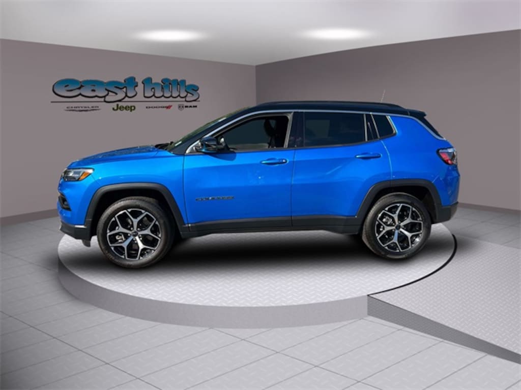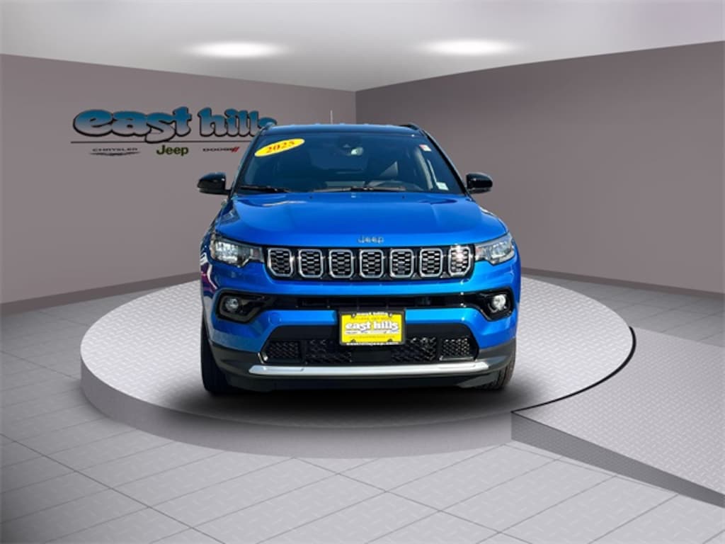 CARFAX One-Owner. Certified. Hydro Blue Pearlcoat 2025 Jeep Compass Limited 2.0L I4 DOHC 8-Speed Automatic 4WD 10.1" Touchscreen Display, 4-Wheel Disc Brakes, ABS brakes, Air Conditioning, Alloy wheels, AM/FM radio: SiriusXM, Apple CarPlay/Android Auto, Auto High-beam Headlights, Auto-dimming Rear-View mirror, Automatic temperature control, Brake assist, Compass, Dual front impact airbags, Dual front side impact airbags, Electronic Stability Control, Emergency communication system: Jeep Connect, Four wheel independent suspension, Front anti-roll bar, Front dual zone A/C, Front fog lights, Fully automatic headlights, Heated front seats, Knee airbag, Leather Shift Knob, Leather steering wheel, Leatherette Seats, Low tire pressure warning, Occupant sensing airbag, Outside temperature display, Overhead airbag, ParkView Rear Back-Up Camera, Power driver seat, Power steering, Premium audio system: UConnect 5, Quick Order Package 29G, Radio: Uconnect 5 w/10.1" Display, Rain sensing wipers, Rear anti-roll bar, Remote keyless entry, Security system, Split folding rear seat, Steering wheel mounted audio controls, Traction control, Wheels: 18" x 7" Painted Diamond Cut Alum (DISC).