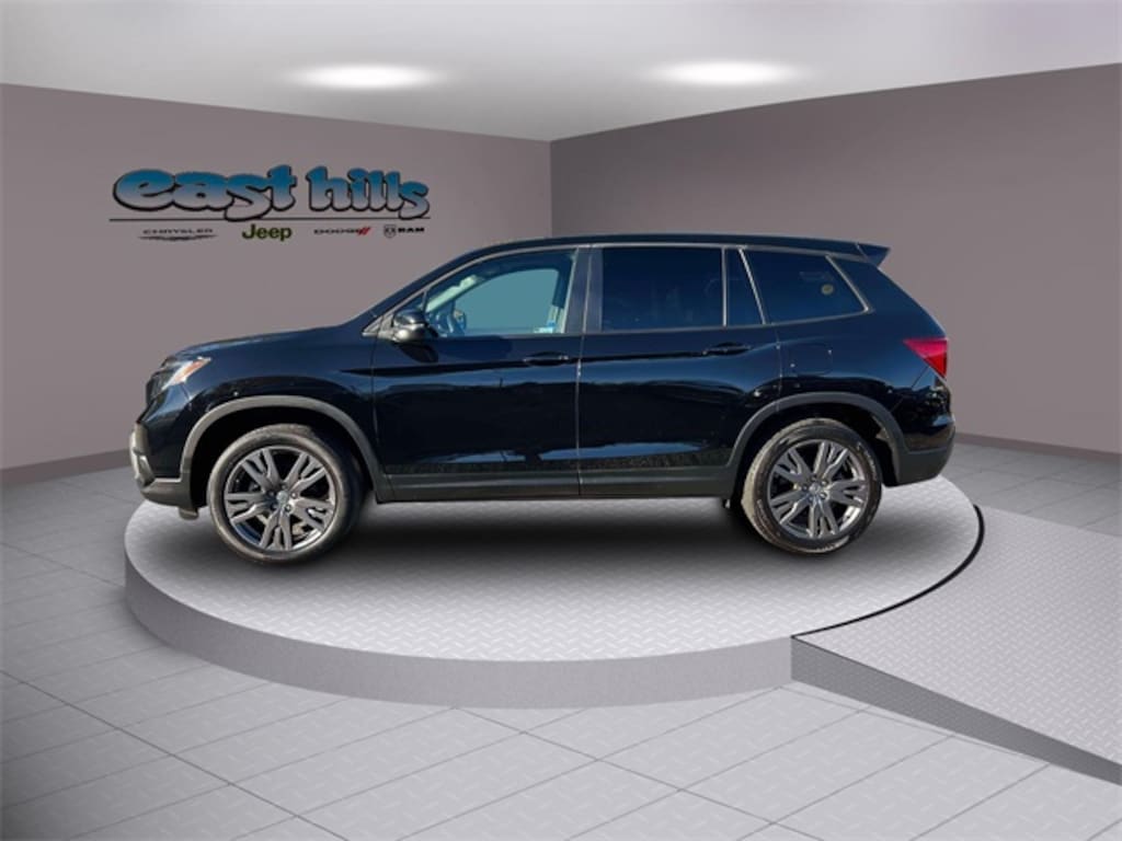 CARFAX One-Owner. Crystal Black Pearl 2021 Honda Passport EX-L 3.5L V6 24V SOHC i-VTEC 9-Speed Automatic AWD 4-Wheel Disc Brakes, A/V remote: CabinControl, ABS brakes, Air Conditioning, Alloy wheels, AM/FM radio: SiriusXM, Apple CarPlay/Android Auto, Auto High-beam Headlights, Auto-dimming Rear-View mirror, Automatic temperature control, Blind Spot Information (BSI) System warning, Brake assist, Driver's Seat Mounted Armrest, Dual front impact airbags, Dual front side impact airbags, Electronic Stability Control, Emergency communication system: HondaLink Assist, Exterior Parking Camera Rear, Forward collision: Collision Mitigation Braking System (CMBS) + FCW mitigation, Four wheel independent suspension, Front anti-roll bar, Front dual zone A/C, Front fog lights, Fully automatic headlights, Heated Front Bucket Seats, Lane departure: Lane Keeping Assist System (LKAS) active, Leather-Trimmed Seats, Low tire pressure warning, Memory seat, Occupant sensing airbag, Outside temperature display, Overhead airbag, Power driver seat, Power Liftgate, Power moonroof, Power passenger seat, Radio: 215-Watt Audio System w/7 Speakers, Rear air conditioning, Rear anti-roll bar, Remote keyless entry, Security system, Speed-sensing steering, Split folding rear seat, Steering wheel mounted audio controls, Traction control, Wheels: 20" Split-Spoke Pewter Gray Alloy.