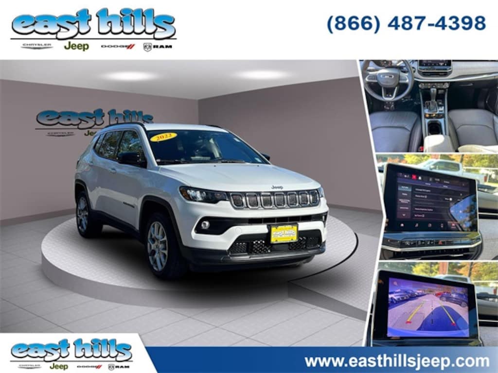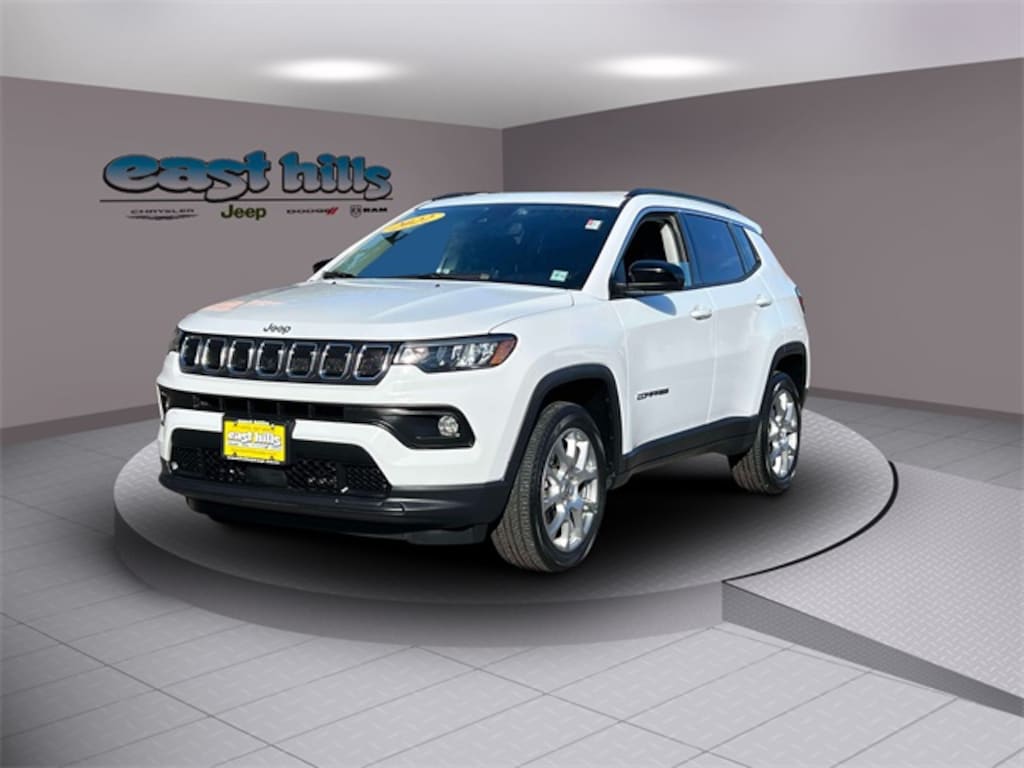 Recent Arrival! CARFAX One-Owner. Certified. Bright White Clearcoat 2022 Jeep Compass Latitude Lux 2.4L I4 9-Speed 948TE Automatic 4WD 4-Wheel Disc Brakes, ABS brakes, Air Conditioning, Alloy wheels, AM/FM radio: SiriusXM, Anti-whiplash front head restraints, Auto High-beam Headlights, Auto-dimming Rear-View mirror, Brake assist, Dual front impact airbags, Dual front side impact airbags, Electronic Stability Control, Emergency communication system: SiriusXM Guardian, Four wheel independent suspension, Front anti-roll bar, Front fog lights, Fully automatic headlights, Heated front seats, Heated steering wheel, Knee airbag, Leather Shift Knob, Leather Trimmed Bucket Seats, Low tire pressure warning, Occupant sensing airbag, Overhead airbag, ParkView Rear Back-Up Camera, Power driver seat, Quick Order Package 2GL, Radio: Uconnect 5 w/10.1" Display, Rear anti-roll bar, Remote keyless entry, Security system, Split folding rear seat, Steering wheel mounted audio controls, Traction control, Wheels: 18" x 7.0" Painted Aluminum.