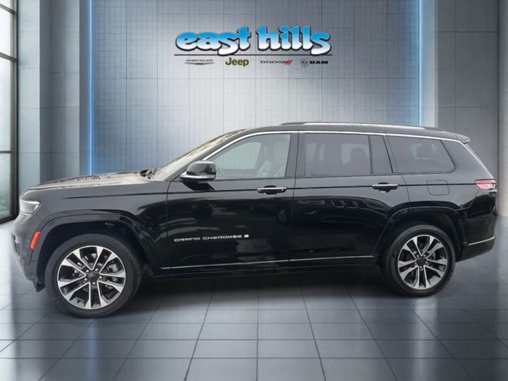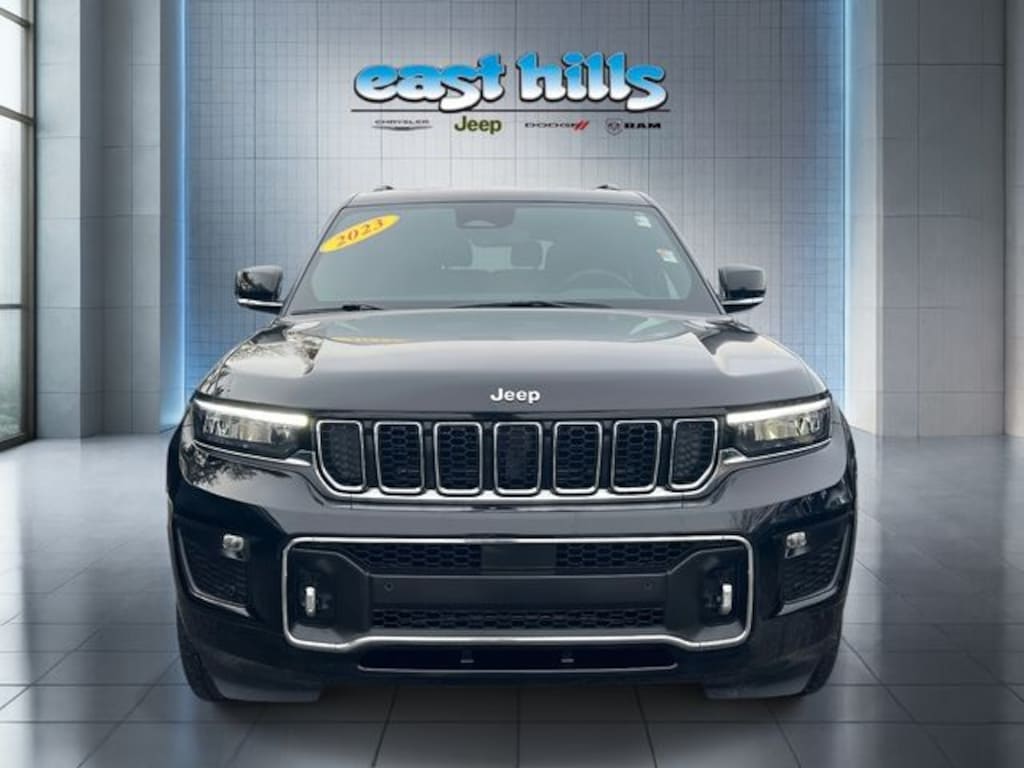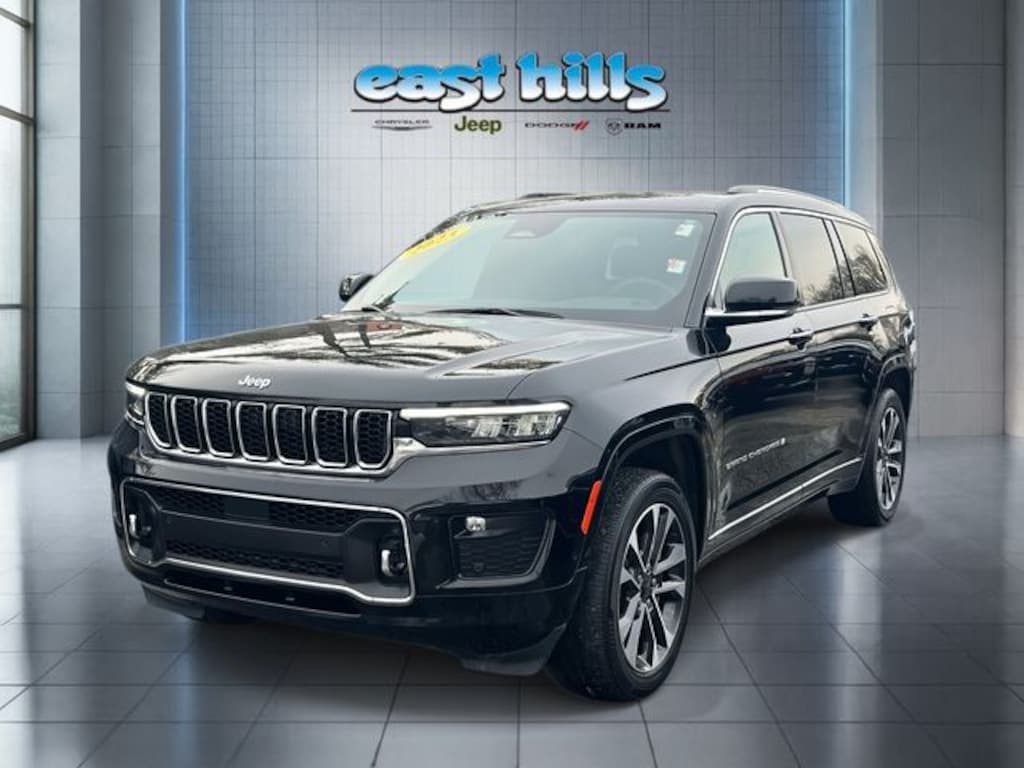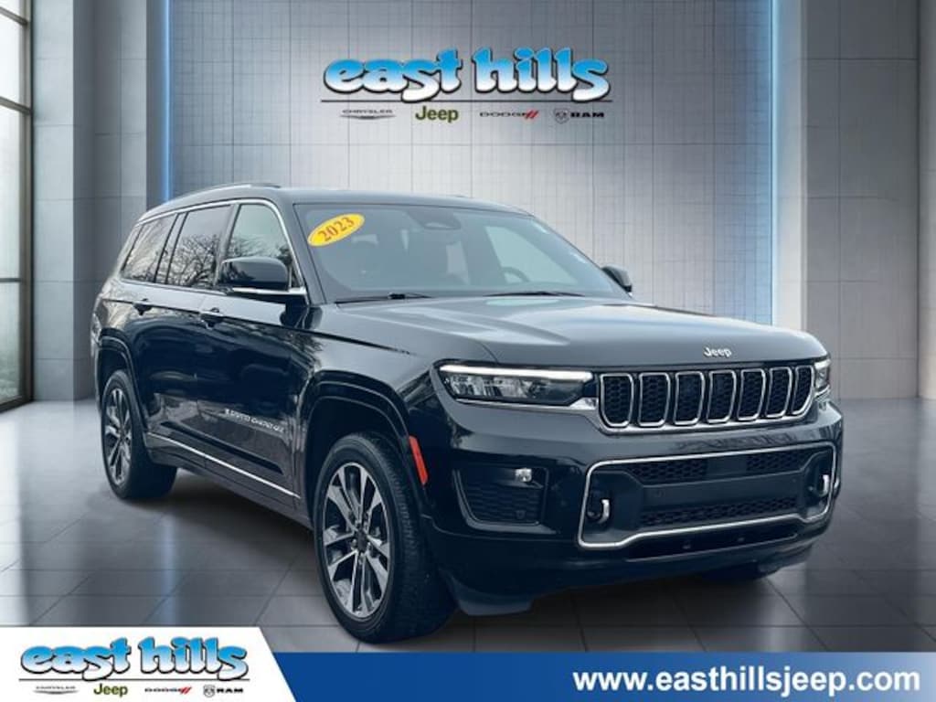 CARFAX One-Owner. Clean CARFAX. Certified. Diamond Black Crystal Pearlcoat 2023 Jeep Grand Cherokee L Overland 3.6L V6 24V VVT 8-Speed Automatic 4WD 10 Speakers, 3rd row seats: split-bench, 4-Wheel Disc Brakes, ABS brakes, Active Cruise Control, Adaptive suspension, Air Conditioning, Alloy wheels, AM/FM radio: SiriusXM with 360L, Anti-whiplash front head restraints, Auto High-beam Headlights, Auto-dimming Rear-View mirror, Auto-leveling suspension, Automatic temperature control, Brake assist, Compass, Dual front impact airbags, Dual front side impact airbags, Electronic Stability Control, Emergency communication system, Four wheel independent suspension, Front anti-roll bar, Front dual zone A/C, Front fog lights, Fully automatic headlights, Heated front seats, Heated rear seats, Heated steering wheel, Knee airbag, Low tire pressure warning, Memory seat, Nappa Leather Seats, Navigation System, Normal Duty Suspension, Occupant sensing airbag, Outside temperature display, Overhead airbag, Power driver seat, Power Liftgate, Power moonroof, Power passenger seat, Power steering, Power windows, Quick Order Package 22N, Radio: Uconnect 5 Nav w/10.1" Display, Rear air conditioning, Rear anti-roll bar, Reclining 3rd row seat, Remote keyless entry, Security system, Speed-Sensitive Wipers, Split folding rear seat, Steering wheel mounted audio controls, Traction control, Ventilated front seats, Wheels: 20" x 8.5" Machined Face Aluminum.