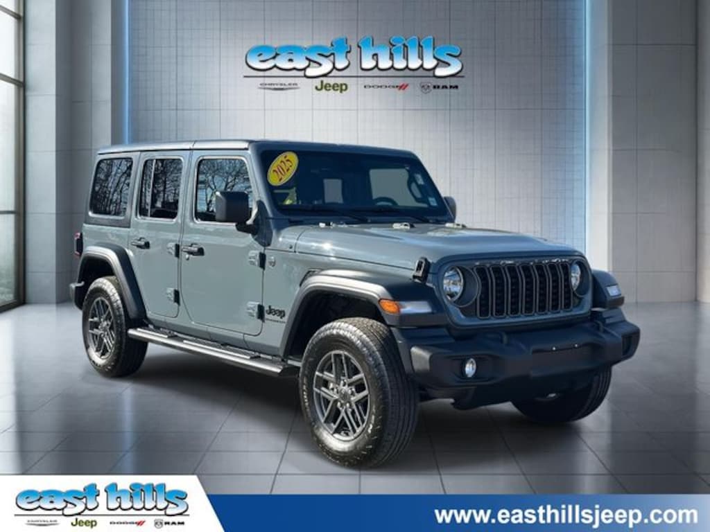 Recent Arrival! CARFAX One-Owner. Clean CARFAX. Certified. Anvil Clear Coat 2025 Jeep Wrangler Sport S 2.0L I4 DOHC 8-Speed Automatic 4WD 2-Door Passive Entry, Front Door Locks, 4-Wheel Disc Brakes, 8 Speakers, ABS brakes, Advanced Brake Assist, Air Conditioning w/Auto Temperature Control, Air Filtering, AM/FM radio: SiriusXM, Apple CarPlay/Android Auto, Auto High Beam Headlamp Control, Automatic Headlamps, Black 3-Piece Hard Top, Blind Spot & Cross Path Detection, Brake assist, Cluster 7.0" TFT Color Display, Compass, Convenience Group, Corning Gorilla Glass, Deep Tint Sunscreen Windows, Dual front impact airbags, Dual front side impact airbags, Electronic Stability Control, Emergency/Assistance Call, Enhanced Adaptive Cruise Control, Freedom Panel Storage Bag, Front anti-roll bar, Front fog lights, Full Speed Forward Collision Warning Plus, Heated Front Seats, Heated Steering Wheel, Injection Molded Black Rear Bumper, Integrated roll-over protection, Jeep Trail Rated Kit, LED Taillamps, Low tire pressure warning, Mopar Black Tubular Side Steps, Normal Duty Suspension, Occupant sensing airbag, Outside temperature display, Overhead airbag, ParkSense Rear Park Assist System, ParkView Rear Back-Up Camera, Power Heated Mirrors, Power steering, Power windows, Premium Wrapped Steering Wheel, Quick Order Package 22S Sport S, Radio: Uconnect 5 w/12.3" Display, Rear anti-roll bar, Rear Window Defroster, Rear Window Wiper/Washer, Remote keyless entry, Remote Start System, Safety Group, Security Alarm, Split folding rear seat, Steering wheel mounted audio controls, Sun Visors w/Illuminated Vanity Mirrors, Traction control, Universal Garage Door Opener, Wheels: 17" x 7.5" Black Steel Styled, Wheels: 17" x 7.5" Gray.