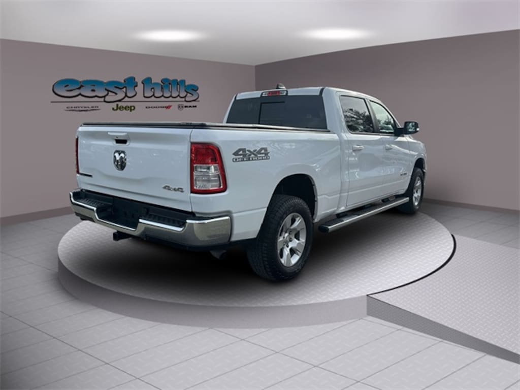 Clean CARFAX. Certified. Bright White Clearcoat 2022 Ram 1500 Big Horn/Lone Star 3.6L V6 24V VVT 8-Speed Automatic 4WD 2nd Row In Floor Storage Bins, 4-Wheel Disc Brakes, 4G LTE Wi-Fi Hot Spot, 8.4" Touchscreen Display, ABS brakes, Advanced Brake Assist, All Plant-Installed Decals, Alloy wheels, Apple CarPlay, Auto-Dimming Exterior Driver Mirror, Auto-Dimming Rear-View Mirror, Bed Utility Group, Big Horn Badge, Big Horn Level 1 Equipment Group, Black Exterior Mirrors, Black Premium Power Mirrors, Bluetooth Handsfree Phone & Audio, Brake assist, Class IV Receiver Hitch, Cluster 3.5" TFT Color Display, Compass, Connectivity - US/Canada, Convex Wide-Angle Mirror Insert, Dual front impact airbags, Dual front side impact airbags, E-Locker Rear Axle, Electronic Stability Control, Emergency communication system: SiriusXM Guardian, Exterior Mirrors Courtesy Lamps, Exterior Mirrors w/Heating Element, Exterior Mirrors w/Supplemental Signals, For Details, Visit DriveUconnect.com, Front anti-roll bar, Front Extra HD Shock Absorbers, Front fog lights, Front wheel independent suspension, Full Speed Forward Collision Warning Plus, Fully automatic headlights, Global Telematics Box Module (TBM), Glove Box Lamp, Google Android Auto, GPS Antenna Input, Hill Descent Control, Integrated Center Stack Radio, Lane Keep Assist, Leather steering wheel, Level 1 Safety Group, Low tire pressure warning, MOPAR 4 Adjustable Cargo Tie-Down Hooks, MOPAR Deployable Bed Step, MOPAR Spray In Bedliner, Occupant sensing airbag, Off Road Decals, Off Road Group, Overhead airbag, ParkSense Front/Rear Park Assist w/Stop, ParkView Rear Back-Up Camera, Pedestrian Emergency Braking, Pick-Up Box Lighting, Power 2-Way Driver Lumbar Adjust, Power 8-Way Driver Seat, Power Adjustable Pedals, Power steering, Power-Folding Mirrors, Quick Order Package 23Z Big Horn, Radio: Uconnect 5 W w/8.4" Display, Raised Ride Height, Rear anti-roll bar, Rear Dome w/On/Off Switch Lamp, Rear Extra HD Shock Absorbers, Rear Power Sliding Window, Rear step bumper, Rear Window Defroster, Remote keyless entry, SiriusXM Radio Service, SiriusXM Satellite Radio, Split folding rear seat, Steering wheel mounted audio controls, Sun Visors w/Illuminated Vanity Mirrors, Tow Hooks, Traction control, Trailer Brake Control, Universal Garage Door Opener, USB Host Flip, Wheels: 18" x 8" Cast-Aluminum Painted.