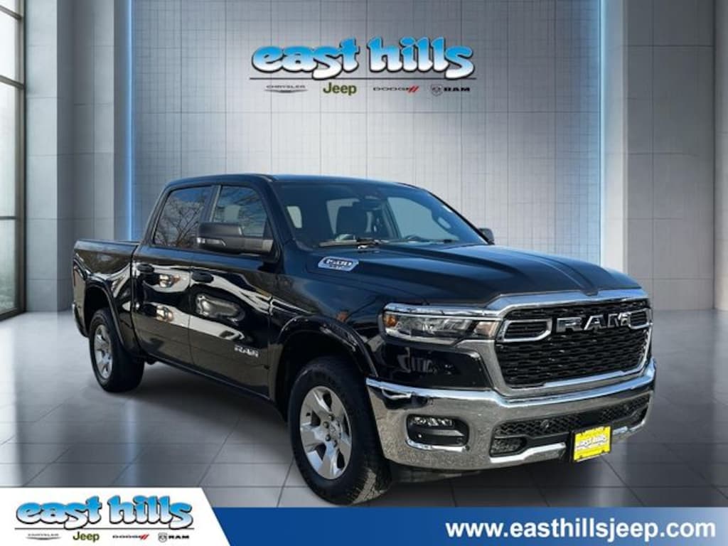 Recent Arrival! CARFAX One-Owner. Certified. Diamond Black Crystal Pearlcoat 2025 Ram 1500 Big Horn/Lone Star 3.0L I6 8-Speed Automatic 4WD 115V Auxiliary Power Outlet, 115V Auxiliary Rear Power Outlet, 12" Touchscreen Display, 2nd Row In Floor Storage Bins, 4-Wheel Disc Brakes, 400W Inverter, 4G LTE Wi-Fi Hot Spot, 9 Amplified Speakers w/Subwoofer, ABS brakes, Air Conditioning ATC w/Dual Zone Control, Alloy wheels, Apple CarPlay, Apple CarPlay/Android Auto, Auto High-beam Headlights, Auto Power-Folding Mirrors, Auto-Dimming Exterior Driver Mirror, Auto-Dimming Rear-View Mirror, Big Horn Level 2 Equipment Group, Black Exterior Mirrors, Black Premium Power Mirrors, Brake assist, Cluster 7.0" TFT Color Display, Compass, Configurable Drive Mode, Connected Travel & Traffic Services, Connectivity - US/Canada, Convex Wide-Angle Exterior Mirror Insert, Dual front impact airbags, Dual front side impact airbags, Electronic Stability Control, Exterior Mirrors Courtesy Lamps, Exterior Mirrors w/Heating Element, Exterior Mirrors w/Supplemental Signals, Front anti-roll bar, Front fog lights, Front wheel independent suspension, Fully automatic headlights, Glove Box Lamp, Google Android Auto, GPS Antenna Input, GPS Navigation, HD Radio, Heated Front Seats, Heated Steering Wheel, Integrated Voice Command w/Bluetooth, Leather Wrapped Steering Wheel, LED Dome Lamp w/On/Off Switch, LED Footwell Lighting, Low tire pressure warning, Manual Adjust 4-Way Front Passenger Seat, Media Hub w/2 Charge Only USBs, Occupant sensing airbag, Overhead airbag, Overhead LED Lamps, ParkView Rear Back-Up Camera, Power 2-Way Driver Lumbar Adjust, Power Adjust 8-Way Driver Seat, Power Adjustable Pedals, Power steering, Power windows, Premium Overhead Console, Quick Order Package 21Z Big Horn, Radio: Uconnect 5 Nav w/12.0" Display, Rear anti-roll bar, Rear Power Sliding Window, Rear step bumper, Rear Window Defroster, Remote keyless entry, Remote Tailgate Release, Security Alarm, SiriusXM w/360L, Split folding rear seat, Steering Wheel Mounted Audio Controls, Sun Visors w/Illuminated Vanity Mirrors, Traction control, Universal Garage Door Opener, USB Host Flip, Wheels: 18" x 8" Cast-Aluminum Painted.